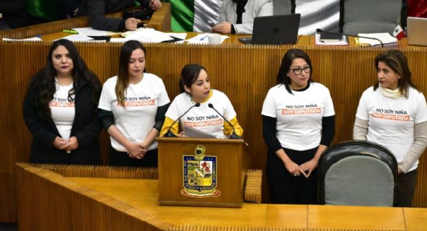 Las legisladoras Tabita Ortiz, Daniela Puente, Sandra Pámanes, Norma Benítez y la misma Reyes subieron a tribuna portando camisetas con la leyenda “No soy niña, soy diputada”.