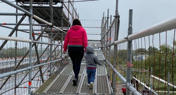 Juárez.- Los vecinos de Mirador de San Antonio y Riberas de la Morena en Juárez, pasaron de temblar, a tener riesgos de resbalones y hasta descargas eléctricas ante el cambio de la escalera de andamios a una estructura metálica, la cual sigue presentando riesgos a los peatones.