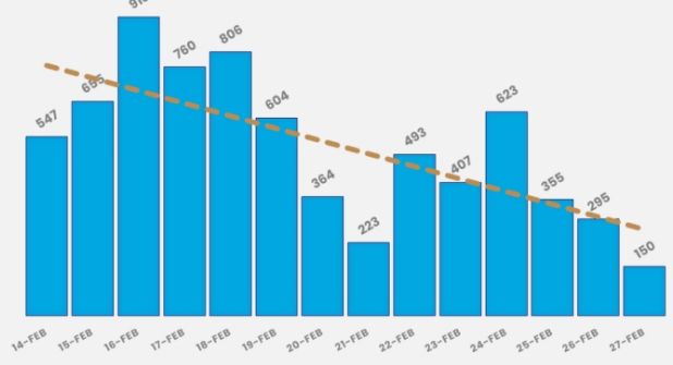 La Secretaría de Salud informó este lunes que de acuerdo al reporte del 27 de febrero los contagios diarios disminuyeron.