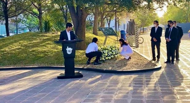 Integrantes del Comité Ejecutivo de la Federación de Estudiantes del Tec (FETEC), colocaron una ofrenda floral y guardaron un minuto de silencio en su honor, en la placa conmemorativa ubicada en la explanada del Centro de Congresos del Campus Monterrey.