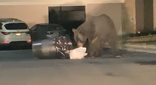 El oso obtuvo del basurero una bolsa color blanca que después se llevó a la zona no poblada.