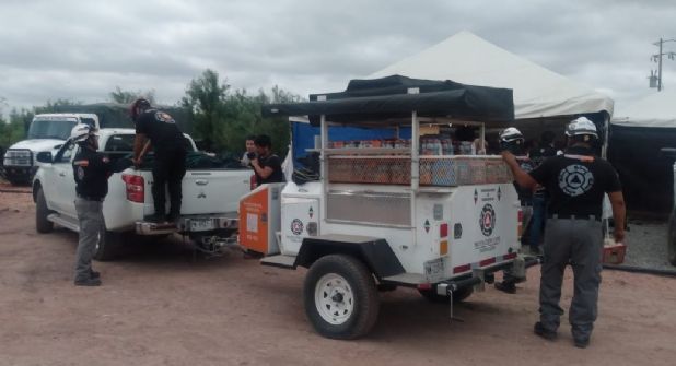 Monterrey.- Elementos de Protección Civil del estado de Nuevo León informaron la entrega de apoyo y víveres al equipo de rescatistas que se encuentra en la mina Pinabete, en Sabinas, Coahuila, donde diez trabajadores quedaron atrapados desde hace más de dos semanas.