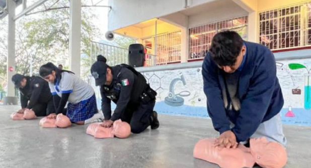 Santa Catarina.- Elementos de la policía de Santa Catarina en coordinación con el personal del grupo “Jaguares” de Protección Civil municipal impartieron un curso de primeros auxilios a los alumnos de la Secundaria Técnica No. 90 “Don José Calderón Ayala”, ubicada en la colonia Los Vitrales, en el municipio de Santa Catarina, Nuevo León.