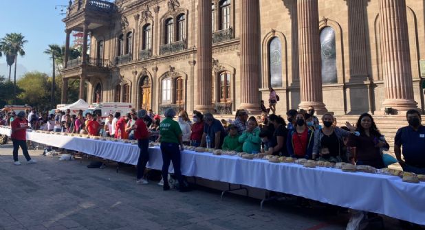 Monterrey.- Cientos de ciudadanos se dieron cita en la Explanada de los Héroes para deleitar de la Rosca de Reyes de 340 metros que el Gobierno del Estado de Nuevo León otorga a los ciudadanos.