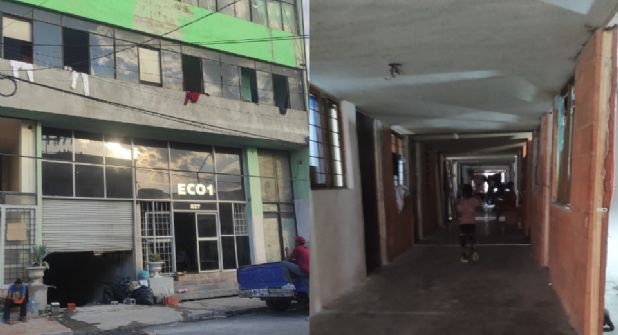 A simple vista, los edificios parecen abandonados por sus ventanas rotas, paredes con graffiti, concreto dañado, pintura desgastada, no cuentan con ventilación, extintores o salidas de emergencia.