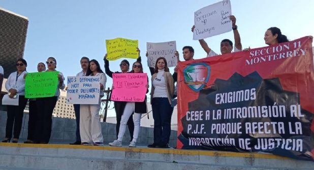 Monterrey. - De manera simultánea, trabajadores del Poder Judicial de la Federación (PJF) se manifestaron en diferentes puntos de la zona metropolitana, exigiendo que no desaparezcan los fideicomisos de la judicatura.