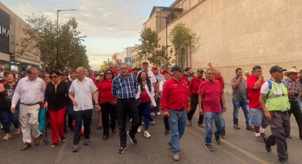 Monterrey.- Al grito de “2 de octubre no se olvida”, cientos de militantes y simpatizantes del Frente Tierra y Libertad y del Partido del Trabajo (PT) se se congregaron en las inmediaciones del Colegio Civil para realizar una manifestación pacífica por las calles del centro de Monterrey para conmemorar los 55 años de la matanza de estudiantes en Tlatelolco.