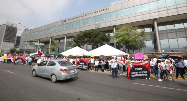 Monterrey. - Decenas de trabajadores del Poder Judicial de la Federación tomaron nuevamente la avenida Constitución, en Monterrey, mientras en el Senado se está discutiendo la eliminación de los fideicomisos.