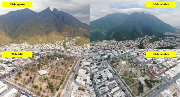 Monterrey. - El panorama seco que proliferaba en cerros y plazas principales del área metropolitana parece haber mejorado después de las lluvias registradas a inicios del mes de octubre.