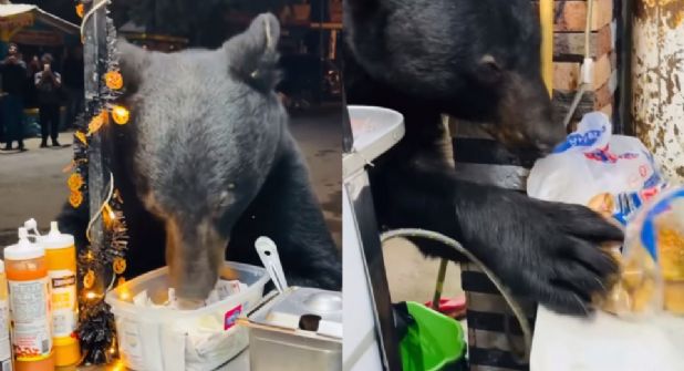 Santiago. – Un oso de gran dimensión quiso calmar su hambre acudiendo a un puesto de comida rápida en el municipio de Santiago, pero al no tener dinero, decidió robarse parte de la mercancía.