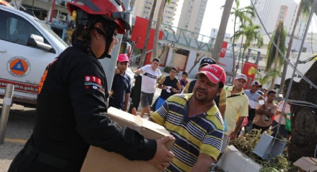 A través de una serie de fotografías compartidas por Protección Civil es posible observar a los elementos de esta corporación descender del helicóptero de Fuerza Civil las cajas con despensa para entregar a los damnificados en Guerrero.