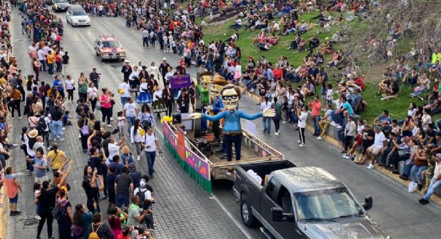 Monterrey.- El centro de Monterrey se llenó de colores y música con el desfile de carros alegóricos que dieron vida al desfile “Regios hasta los Tuétanos”.