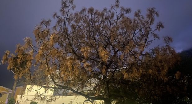 ABC Noticias realizó un recorrido en el parque ubicado entre las calles Lourdes y Versalles y constató lo dicho por los vecinos, pues se observa que el follaje de los pinos está seco, sin embargo, en algunas partes, el ejemplar aún mantiene un color verde en una cantidad menor.