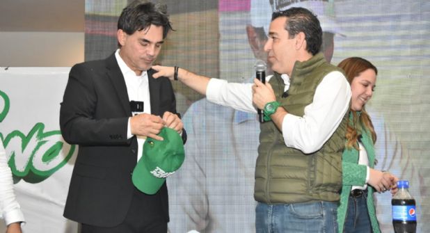 Para finalizar, Zambrano y el dirigente estatal del Partido Verde, sellaron su compromiso con la firma de un documento, mientras el exintegrante de Big Brother se colocaba una gorra verde.