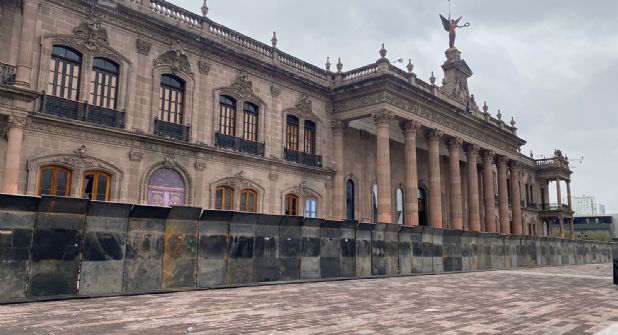 De acuerdo a las imágenes, el blindaje metálico se colocó en el perímetro de las instalaciones, desde la parte de la Macroplaza hasta la zona posterior del edificio.