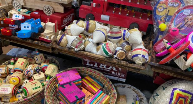 Así lo explicó Salvador Barrón, quien es comerciante de artesanías mexicanas en el Mercado Juárez en el centro de Monterrey y desde hace más de 23 años vende en su puesto juguetes de madera como trompos, muñecas Marías, carritos, guitarras, violines, cocinas y muebles para muñecas.