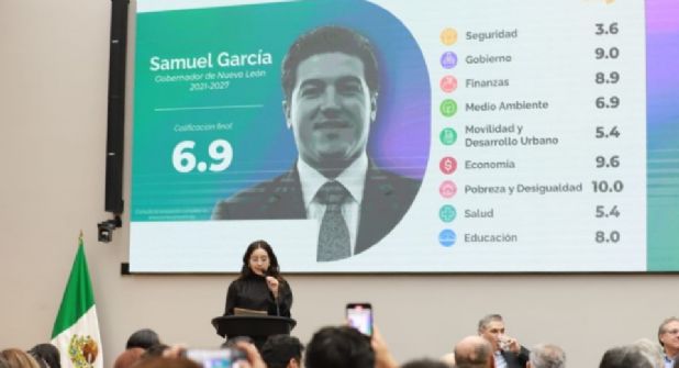 Monterrey.- A dos años de gobierno, la administración de Samuel García obtuvo una calificación de 6.9 puntos en una evaluación realizada por la organización ¿Cómo Vamos Nuevo León?