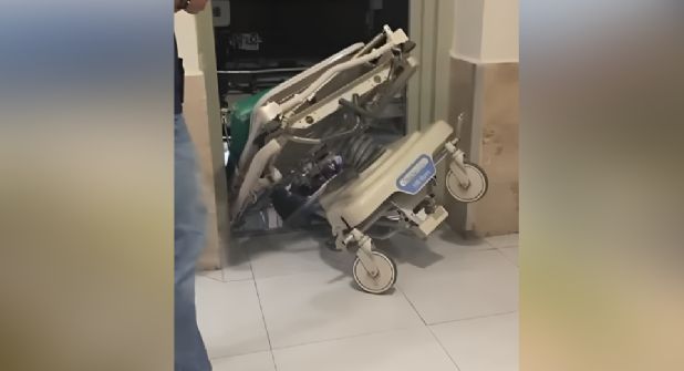 Monterrey.- Un elevador descendió repentinamente sin cerrar sus puertas, dejando atrapada una camilla que estaba siendo transportada por un empleado, en la clínica 34 de Monterrey.
