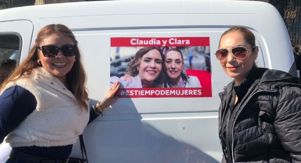 Fue en el centro de Monterrey, justamente en la calle Zaragoza y Morelos, el punto de reunión para la pega de calcamonías en vehículos que se detenían para colaborar y así mismo también mostrar su alegría hacia todas las ciudadanas que se hicieron presentes para ayudar a que distintos vehículos llevaran consigo mismos una imagen de ambas aspirantes de Morena.