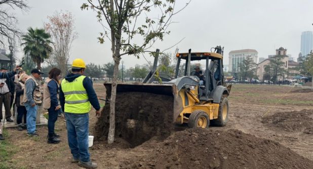 La Secretaría de Desarrollo Urbano Sostenible informó que llevan 32 de 44 árboles que se pretenden plantar en la primera fase del primer cuadro de la plaza que corresponden las calles Washington y Julián Villagrán, en el Centro de Monterrey.