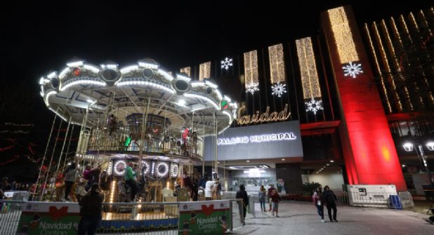 Monterrey.- De cara a las fiestas decembrinas, el gobierno de Monterrey colocó un carrusel, distintos espacios para fotografías, puestos de emprendedores y hasta un pequeño tren que recorre el espacio frente al Palacio de Monterrey, todo ello para la diversión de niños y adultos.