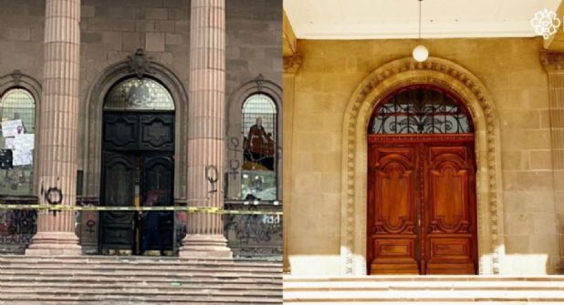 En tanto, se mencionó que la puerta ubicada al oriente del recinto, quedó al cuidado del restaurador Edgardo Esparza López, pues fue la más vulnerable, dado que recibió mayores daños no solo por las manifestaciones del 8 de marzo, sino también por el feminicidio de la joven Debanhi Escobar Bazaldúa.