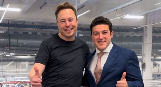 Monterrey.- El gobernador de Nuevo León, Samuel García, y la Titular de "Amar a Nuevo León", Mariana Rodríguez, dieron a conocer que Elon Musk tiene programado venir a la entidad próximamente para poner la primera piedra de la gigaplanta de Tesla.