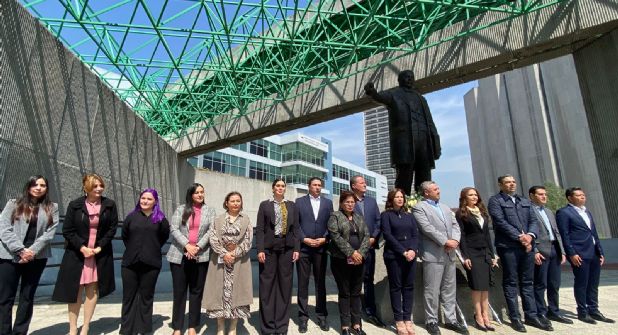 La diputada Alina Vargas fue quien dirigió la ceremonia y resaltó el trabajo de restauración de Cuauhtémoc Zamudio a la escultura del benemérito de las Américas fuera del Congreso Local.