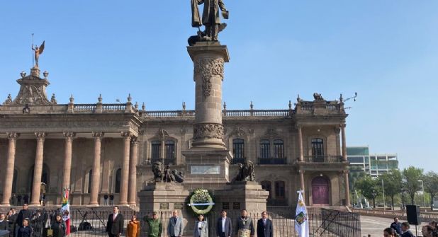 Monterrey.- Con una ceremonia, guardia de honor y honores a la bandera en la Explanada de los Héroes frente al Palacio de Gobierno, este martes 21 de marzo se conmemoró el 217 aniversario del Natalicio de Benito Juárez.