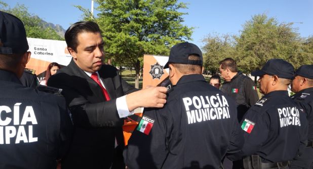 Monterrey.- El alcalde del municipio de Santa Catarina, Jesús Nava Rivera, distinguió este domingo durante una ceremonia la dedicación y profesionalismo de 39 policías de la Secretaría de Seguridad Pública y Vialidad municipal, quienes recibieron un ascenso laboral.