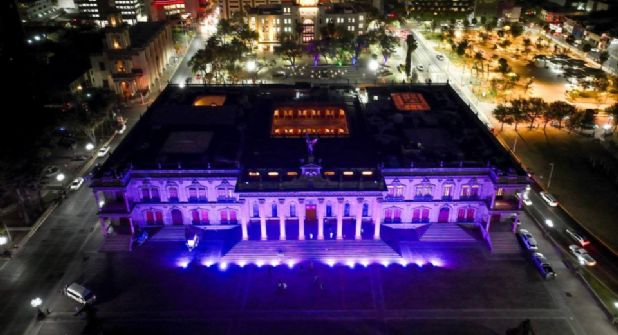 Monterrey.- Con motivo previo al Día Internacional de la Mujer celebrado el 8 de marzo, el Palacio de Gobierno de Nuevo León y el Congreso del Estado se iluminaron del color morado.
