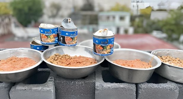 La encargada del refugio refirió que a la hora de la cena, ella suele revolver el alimento que ya tenían con la nueva donación para evitar que les cayera mal a los animalitos.