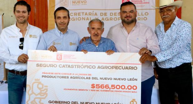 Monterrey.- Gracias al seguro que protege los intereses del sector agrícola en Nuevo León, el Gobierno del Estado entregó una indemnización de más de medio millón de pesos a 65 agricultores por la helada del 23 al 25 de diciembre de 2022 que afectó al campo de Cadereyta.