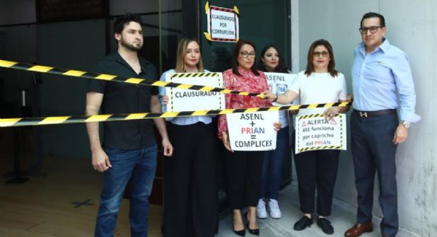 Liderados por Eduardo Gaona, coordinador de la bancada, colocaron a las afueras del edificio, cintas de precaución y cartulinas con el texto “Clausurado por Corrupción”, además de entregar un escrito exigiendo al Auditor, Jorge Galván González, presente un informe sobre quienes han laborado en la Auditoría en los últimos tres años.