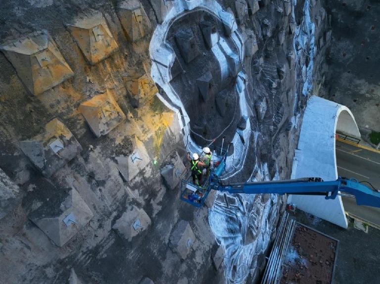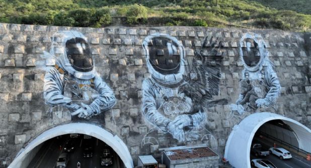 Monterrey.- Este 1 de junio, el municipio de Monterrey inaugurará de manera oficial el mural Guardianes, obra desarrollada por el artista Rubén Carrasco, en la fachada del Túnel de la Loma Larga, donde se mezclarán la urbanización y la naturaleza.