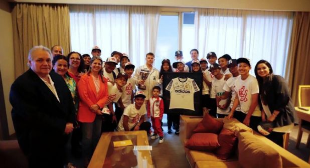 Jalisco.- Los adolescentes que conforman la Selección de Centros Comunitarios de Nuevo León, que ganaron el Desafío Mundial de Madrid, viajaron a Guadalajara, Jalisco y conocieron ayer vienes 5 de mayo al boxeador mexicano Saúl 'Canelo' Álvarez.