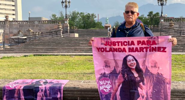 Monterrey.- Con una manifestación que lució desangelada, este lunes 8 de mayo, Don Gerardo Martínez e integrantes de colectivos como ‘Morras Feministas’, se dieron cita a las afueras del Palacio de Gobierno, para exigir justicia por el feminicidio de Yolanda Martínez Cadena de 26 años.