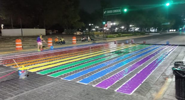 Monterrey.- Durante la madrugada de este sábado las calles del centro de Monterrey fueron pintadas y amanecieron de colores, esto después de que integrantes de la "Marcha de la Diversidad Monterrey" pintaron los pasos peatonales previo a la marcha de la diversidad, donde se esperan al menos más de 100 mil asistentes.