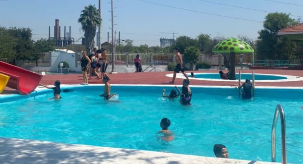 “Estuvo fuertecito el calor. Qué bueno que las autoridades abrieron los parques porque habían dicho que no iba a haber albercas este año”, dijo Isabel Hernández, vecina de la colonia Independencia, mientras disfrutaba de la sombra de un árbol en una banca junto a esposo, quien a su vez preparaba a su pequeña hija para meterla a la alberca.