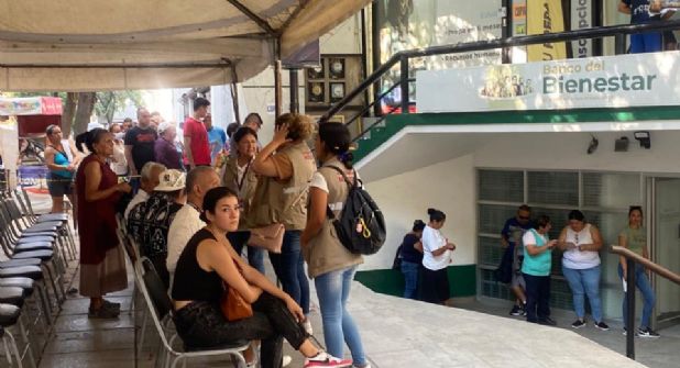 El personal del Banco del Bienestar reveló que esperan que con el paso de los días las filas aminoren luego de que gran parte de los adultos ya hayan cobrado o realizado los trámites correspondientes en la sucursal del Banco del Bienestar.