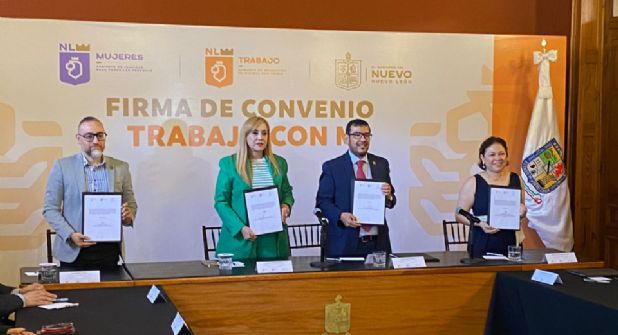 Monterrey.- La Secretaría de las Mujeres y la Secretaría del Trabajo firmaron este martes el convenio “Trabajo con M”. En dicho acuerdo se oficializa una colaboración secretarial para apoyar a las mujeres, tal como lo es el programa de “100 Mujeres” que inició la Secretaría de Trabajo a cargo de Federico Rojas Veloquio, en donde se les capacita en diversos sectores laborales.