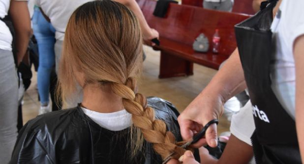 Las reclusas estudiantes de la Escuela de Estilismo e Imagen, impartida por la asociación Reinserta.org, le cortaron el cabello en forma de trenza a un total de 48 donantes voluntarias del Cereso Femenil de Escobedo, esto como parte de las actividades de reinserción social y prácticas restaurativas.