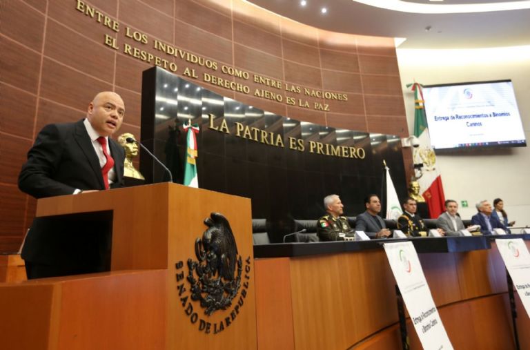 Monterrey.- Durante un evento realizado el pasado viernes, binomios Caninos de la Fiscalía General de la República (FGR), fueron reconocidos por su trabajo en temas de seguridad en el Senado de la República,