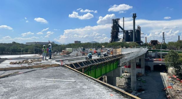 El Puente Verde se encuentra en la última etapa con un avance del 97 por ciento, el retraso es en la parte norte del puente sobre avenida Constitución-Parque Fundidora y, una vez que quede completa esta parte, se dará paso a la arborización e instalación de jardineras.