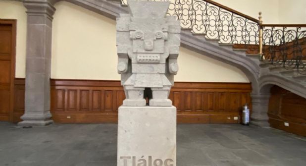 Monterrey.- El Dios Tláloc llegó a Nuevo León, y no solamente con las intensas lluvias del fin de semana, sino que también se colocó en el Palacio de Gobierno una estatua de la deidad mexica.