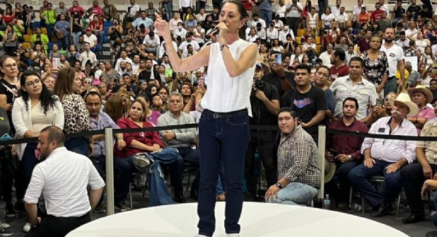 A su llegada, fue recibida con gritos como “Claudia presidenta” y “es un honor estar contigo hoy”, además de frases en lonas y cartulinas como “Claudia eres mi crush”, “Monterrey te Apoya" y “te queremos”.