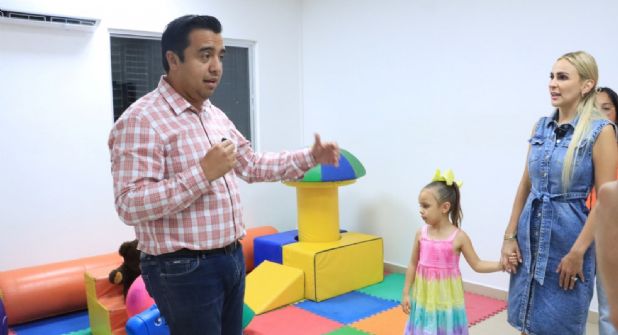 Cabe mencionar, que el edil dio un recorrido por las instalaciones en donde se brindará atención a los pequeños, quien iba acompañado de la Presidenta del DIF Municipal Paola García Yves con su hija.