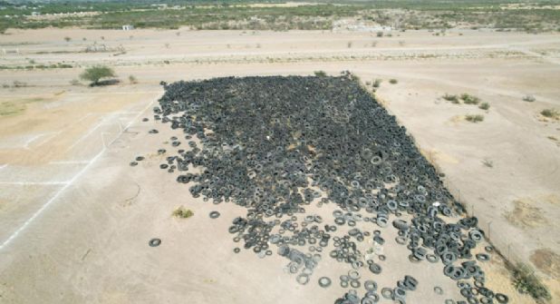 En imágenes compartidas con ABC Noticias, se aprecia cómo Servicios Públicos de Zuazua ha destinado hectáreas de un terreno aledaño a un campo de fútbol para alojar miles de llantas.