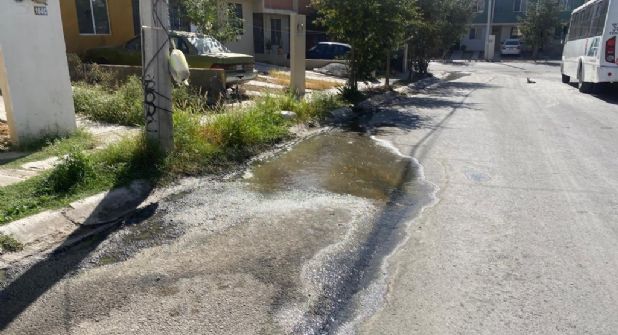 Monterrey.- Vecinos de la colonia Joyas de Carrizales segundo sector, denunciaron la fuga de Agua potable que se desprende por debajo del asfalto de la calle Joyas de Dinamarca, en el municipio de García, Nuevo León.
