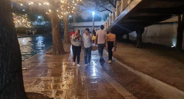 Alrededor de las 20:00 horas, el equipo de ABC Noticias documentó que se estaban registrando lluvias ligeras en el centro de Monterrey, en específico en Paseo Santa Lucía en donde las personas que paseaban en el lugar tuvieron que buscar refugio para cubrirse de la lluvia.